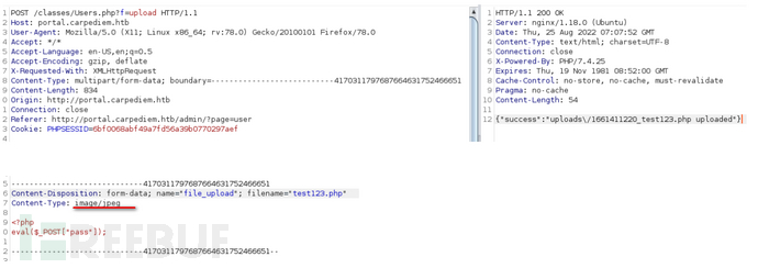 我们随意更改内容,并在发送请求时使用 burpsuite 拦截它;