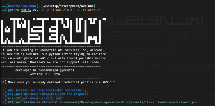 接下来,我们就可以直接 通过run.py脚本来运行awsEnum了: