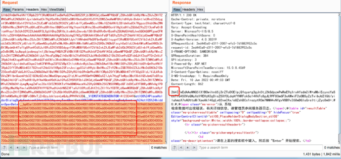 拷贝数据包到burpsuite发包 ,如下图,页面虽然报错但是这里有 返回长度264 其实就表示成功: