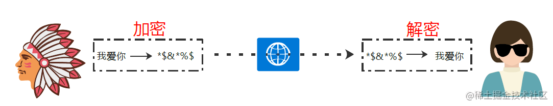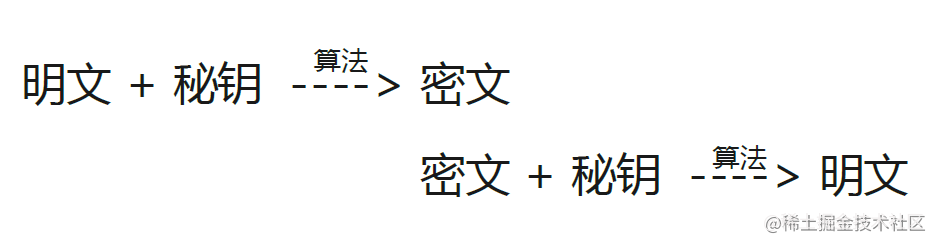 在发消息前,需要使用算法+秘钥对传输的消息(明文)进行加密,加密后使用密文在网络传输,传输到目的地时,再使用相同的算法+秘钥将密文翻译成明文。