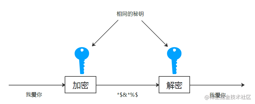 在这个加密和解密的过程中,使用了相同的算法+秘钥。