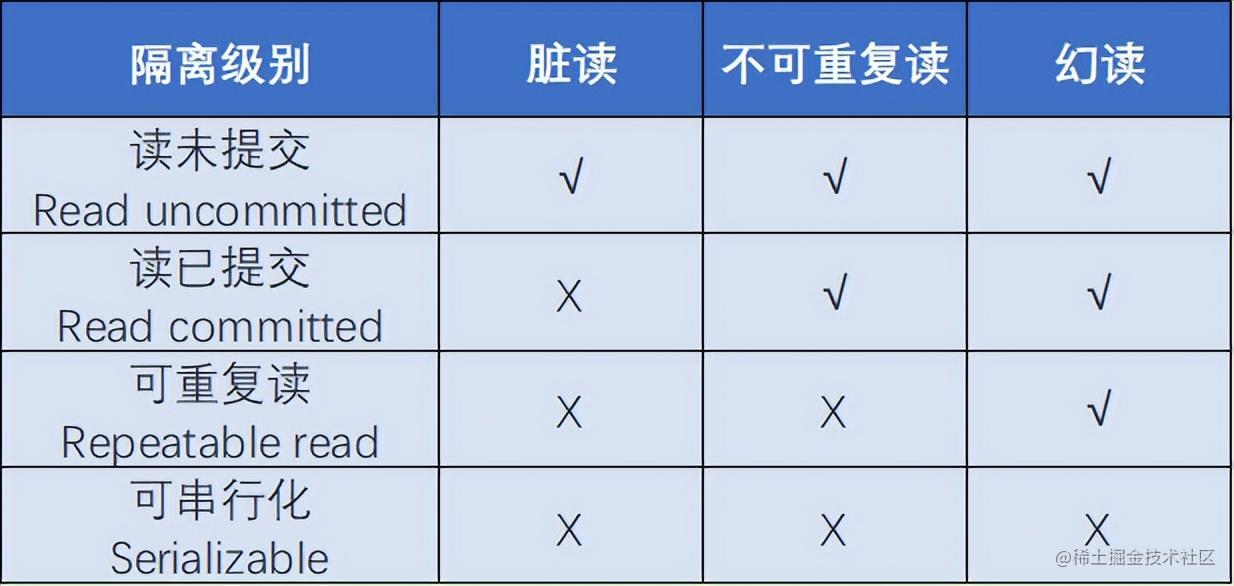 图1 SQL标准定义了4种数据库事务隔离级别