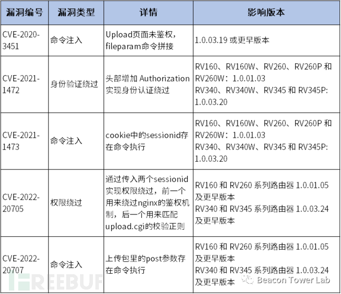 RV340命令执行漏洞(CVE-2022-20707)进行的研究分析,尽管利用此漏洞需要身份验证,但可以通过CVE-2022-20705绕过现有的身份验证机制实现无条件的命令执行。历史相关的漏洞还包括:CVE-2020-3451、CVE-2021-1473、CVE-2021-1472,我们会逐一进行分析。