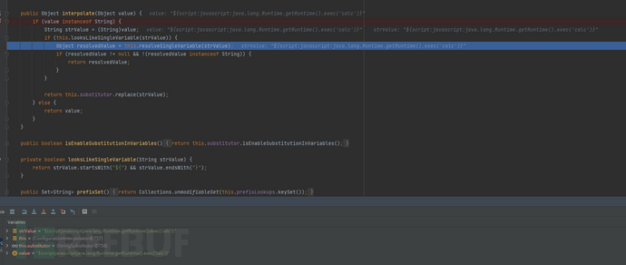 configuration2中,负责对字符串中的变量进行解析的是org.apache.commons.configuration2.interpol.ConfigurationInterpolator类中的interpolate(Object)方法。