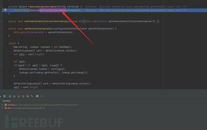 开启debug模式,在经过了前两个if判断之后,随后会进入resolveSingleVariable函数。