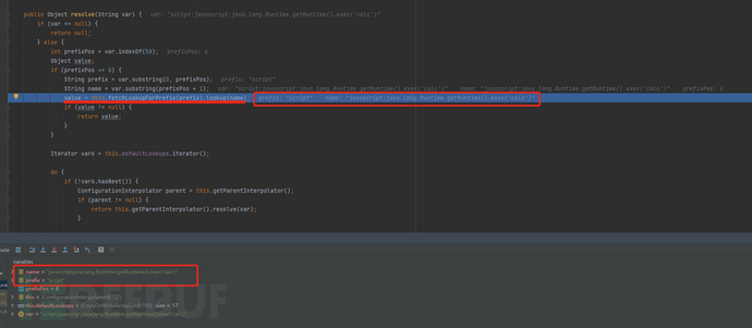 随后进入org.apache.commons.configuration2.interpol.ConfigurationInterpolator#resolve函数中