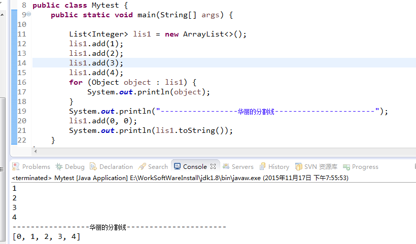 只是稍微说明下就是:因为在路上的时候我在想一个问题:如果我已经有个List对象lis1了(并且已经有很多书籍了);我要在索引为0的位置加一个数据,怎样加!