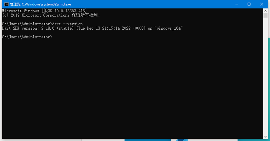 安装完成后,在命令行输入:dart --version,安装成功会出现相应的版本号。