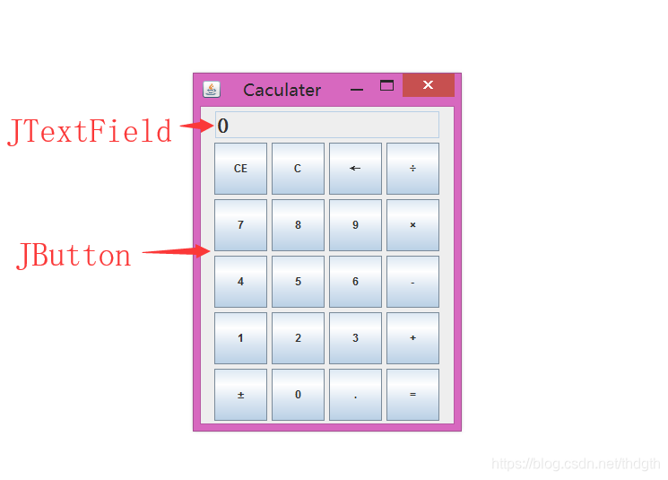 ③定义两个属性(最好是double型)dataA和dataB,dataA存储目前显示的数据,dataB显示后台数据。一开始两个属性默认值都是0,当按下一个数字键,就将dataA中的数据乘以10再加上按下的键的数据,比如按下5之后dataA变成0*10+5=5,再按下6之后变成5*10+6=56。同时,注意每按下一个键之后给dataA赋值之后要将dataA的数据显示在JTextField上,可以用jf.setText(dataA);来实现。可以定义一个方法