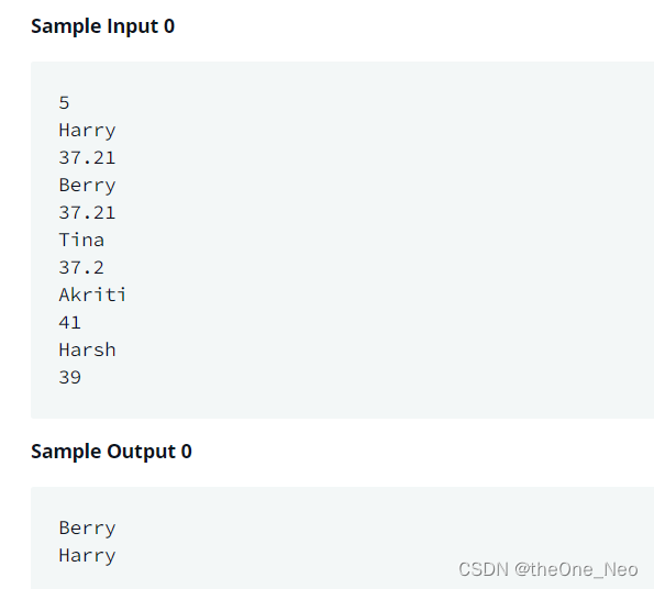 2. 题二:Nested List. 给出n个学生,他们的名字以及成绩,找到成绩第二名(们),可以是成绩相同的多个人。输入: