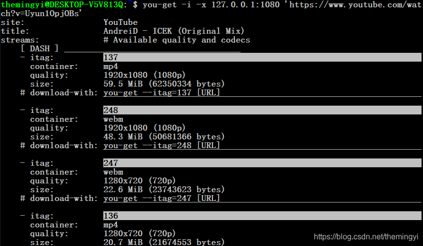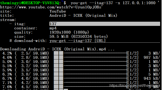 现在子系统也就使用you-get进行操作了,下面给一张自己下载成功的(必须选择1080 P