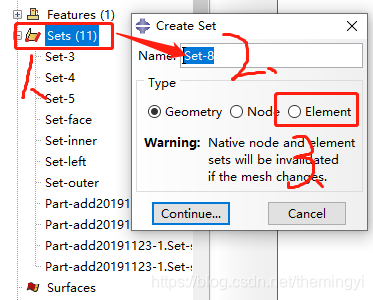 要选择Element,点击Continue,之后选择要设置的部分,完成本set,对于内外的两个介质,使用同样的方式。