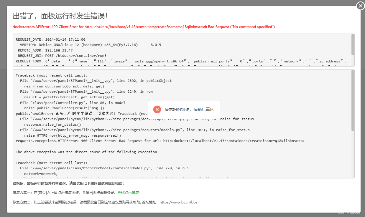 吐槽一句:宝塔面板对docker是一定都不友好,监控,创建,都不可用。建议常用docker的可以试试1panel