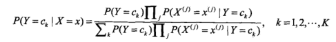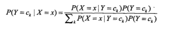 我们前面也说了贝叶斯方法是建立在条件独立假设之上的,我们这里用X表示条件,Y表示结果(我觉得将X理解为自变量,Y理解为因变量),对于条件X可能是有多个属性组成的,而这些个条件都是相互独立的;即如果判断一个水果是苹果还是梨,我们可以通过颜色和形状判断,那么这个颜色和形状是相互对立互不影响的。所以具体的,条件独立性假设公式为: