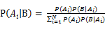 这个分母是什么,简单的看就是:是条件B的概率,在贝叶斯公式中,我们就是要通过条件B来求A,即对应的分类,所以这个结果是变量,B相对是不变的;更通俗的说是在条件B下计算各种分类的概率,所以这个时候对于所有分类,分母是不变的;用公式解释如下,即全概率公式:
