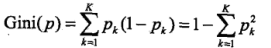 假设有K个分类,样本点数据第k类的概率为pk,则概率分布的基尼指数定义为: