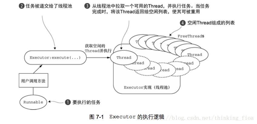 - 从线程池中的空闲线程列表中选择一个Thread,指派去运行一个已提交的任务