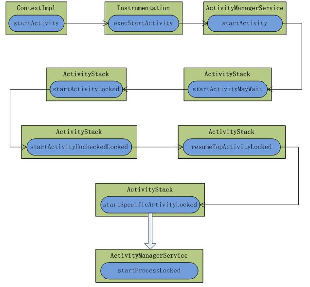 启动一个新的应用程序为例,启动新的应用程序时候是以startActivity的方式进行,这个过程大致如下图: