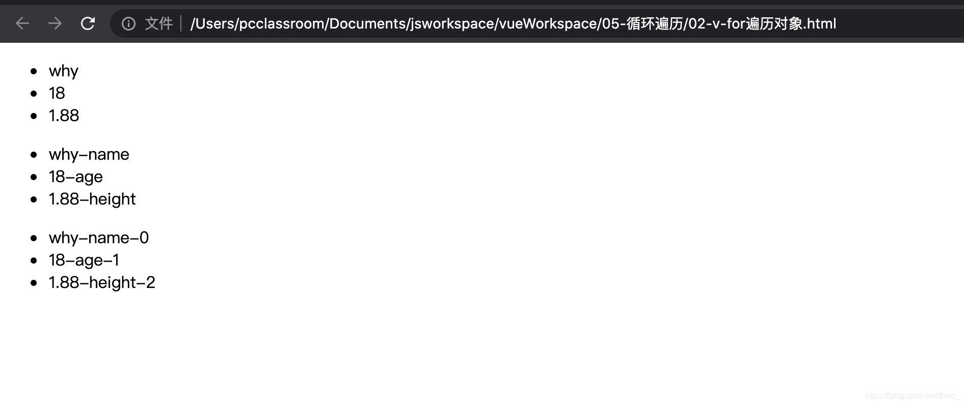 <li v-for="(value, key, index) in info">{{value}}-{{key}}-{{index}}</li>