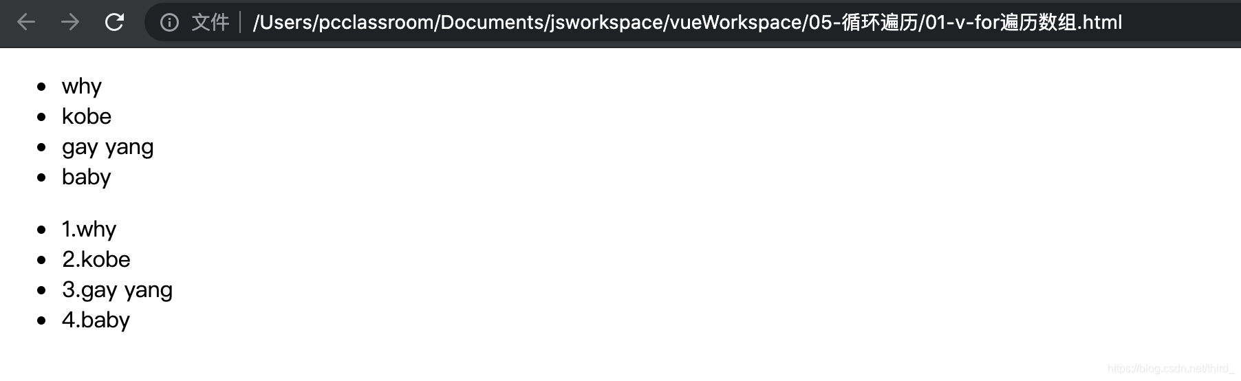 当我们有一组数据需要进行渲染时,我们就可以使用v-for来完成。