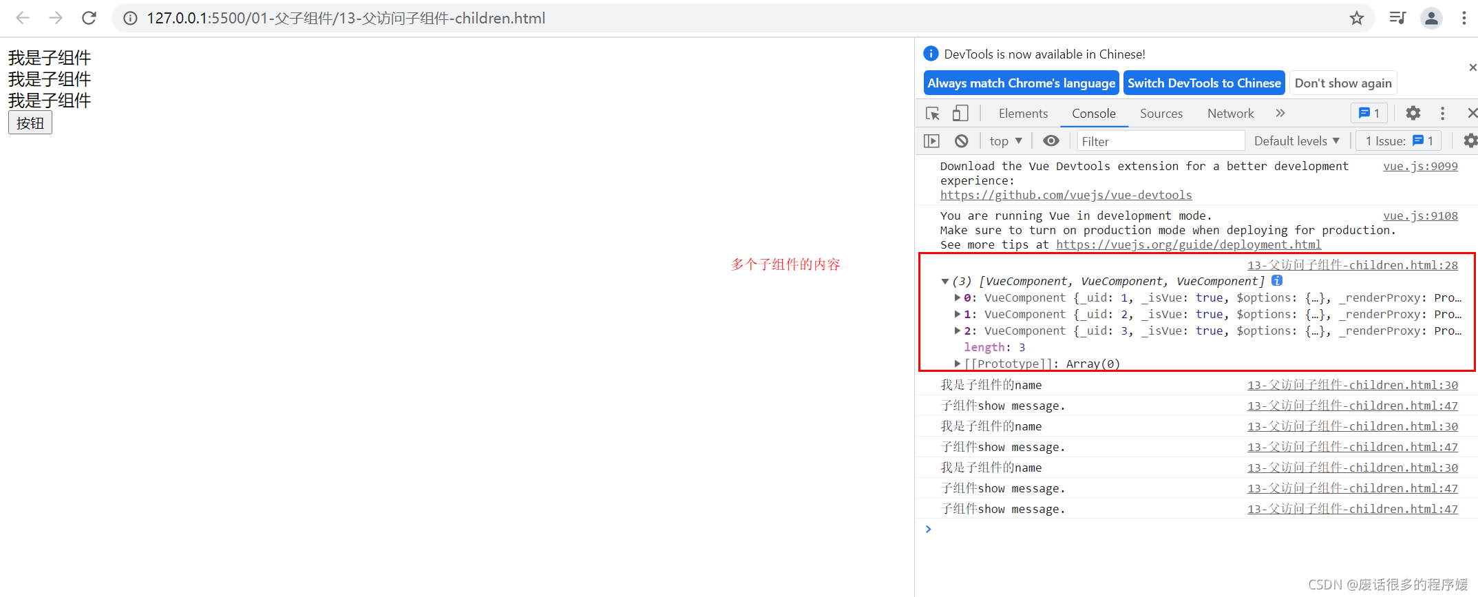 我们先来看下$children的访问