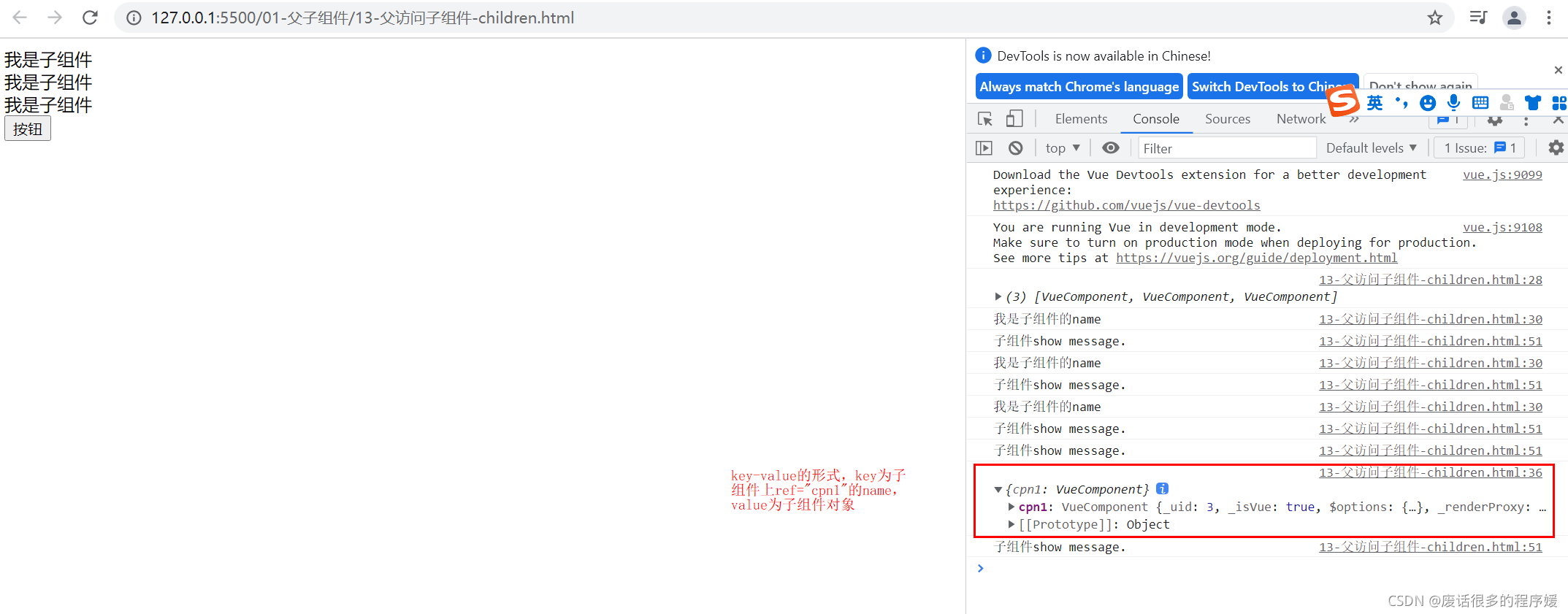 (2) 父组件访问子组件的方式: $refs