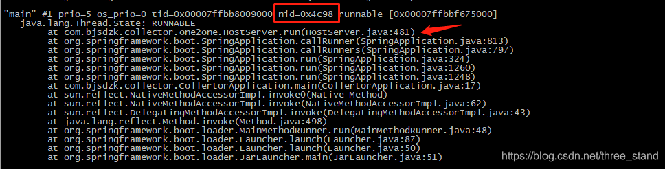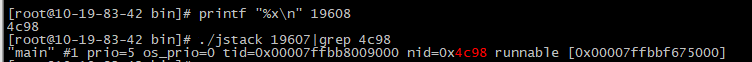 pid19608的线程占用cpu过大 printf "%x\n" 19608(线程pid) 将线程转成16进制,用jstack pid查看线程