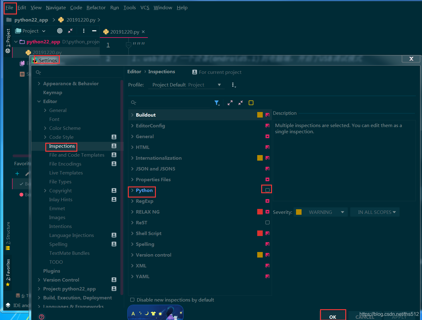 方法二:该方式是关闭pycharm所有的语法检查,新手不建议使用