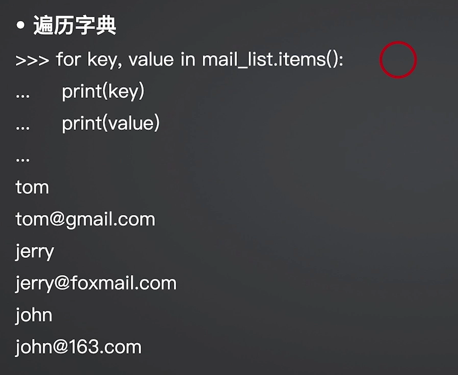 print(mail_list.keys()) # 键 dict_keys(['tom', 'jerry', 'john'])