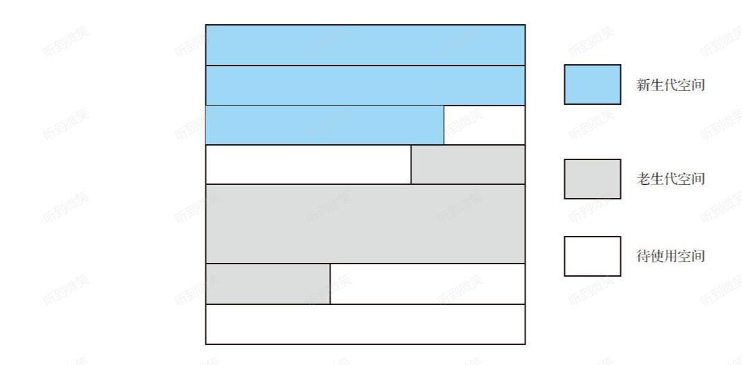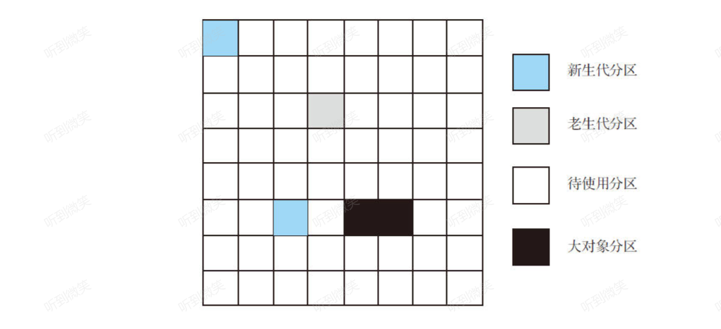 在G1里,新生代就是一系列的内存分区,这意味着不用再要求新生代是一个连续的内存块。类似地,老生代也是由一系列的分区组成。在JVM运行时,从内存管理角度不需要预先设置分区是老生代分区还是新生代分区,而是在内存分配时决定:当新生代需要空间时,则分区被加入新生代中;当老生代需要内存空间时,则分区被加入老生代中。事实上,G1通常的运行状态是:映射G1分区的虚拟内存随着时间的推移在不同的代之间切换。例如,一个G1分区最初被指定为新生代,经过一次新生代的回收之后,整个新生代分区都被划入待使用的分区中,那它既可以作为新生代分区使用,也可以作为老生代分区使用。很可能在完成一个新生代回收之后,一个新生代的分区在未来的某个时刻被用于老生代分区。同样,在一个老生代分区完成回收之后,它就成为待使用分区,在未来某个时候作为一个新生代分区使用。