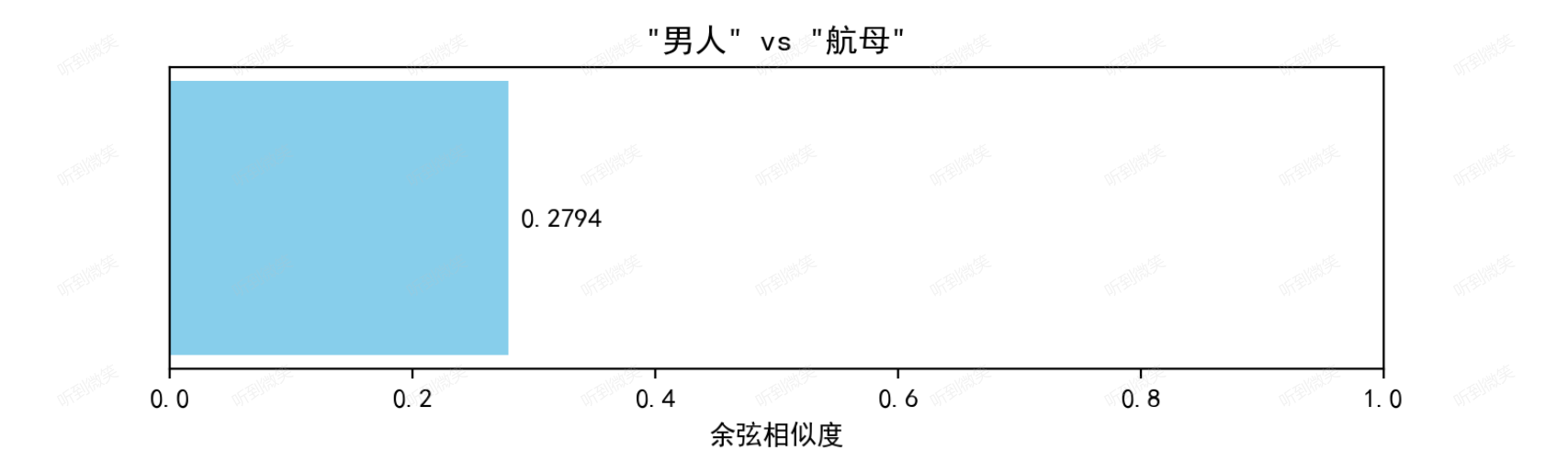 “男人”和“女人”相比于“男人”和“航母”相似度就会更高:
