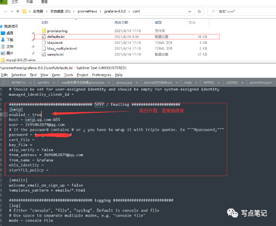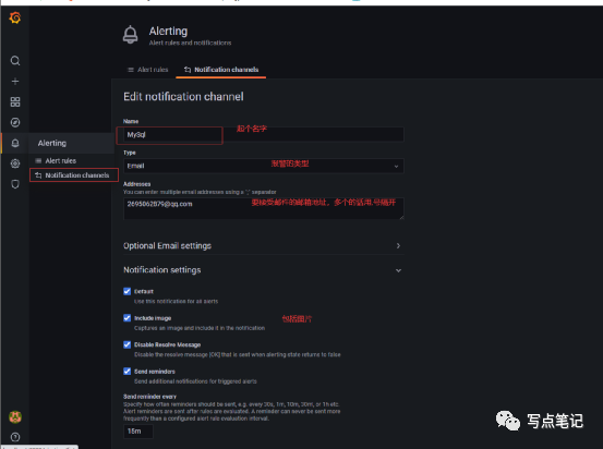 1.配置gafana邮箱信息