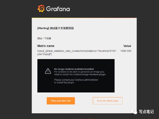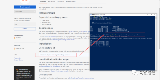 仔细看一下这个没有图片的提示,说的意思是要用管理员身份安装grafana image renderer这个插件,我们搜索一下这个插件。