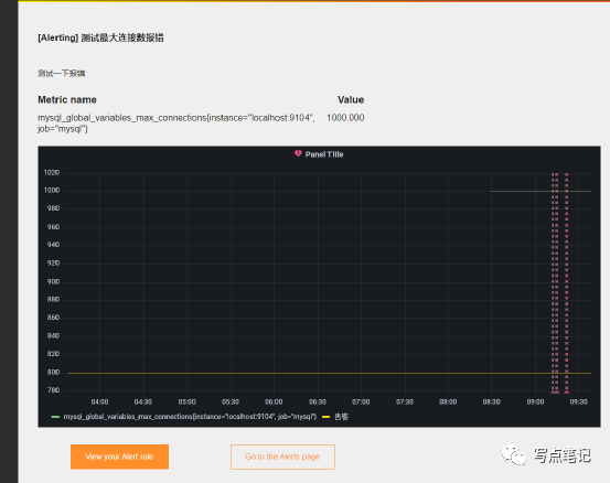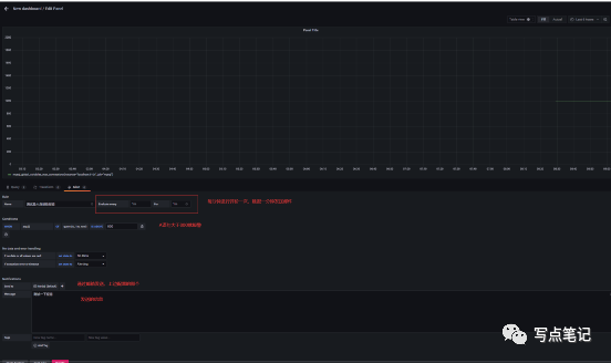 上边我们简单的说了一下gafana的邮件报警,这里我们配置一下如何让我们的监控面板来进行报错,首先我们要明白的是gafana导入的面板不能配置报警,也就是说我们要报警还必须手动的去创建面板,然后编写promSql查询语句,然后设置报警的条件和报警的信息。当然嗨哟啊选择使用邮件报警的配置。