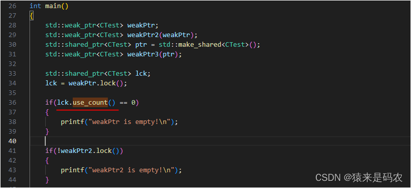 1,构造空对象,如 std::weak_ptr<CTest> weakPtr;