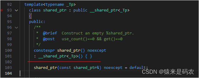 可以看到当对象过期时,构造了一个空的 shared_ptr<>对象进行返回,而这个空对象它的初始化值是这样的: