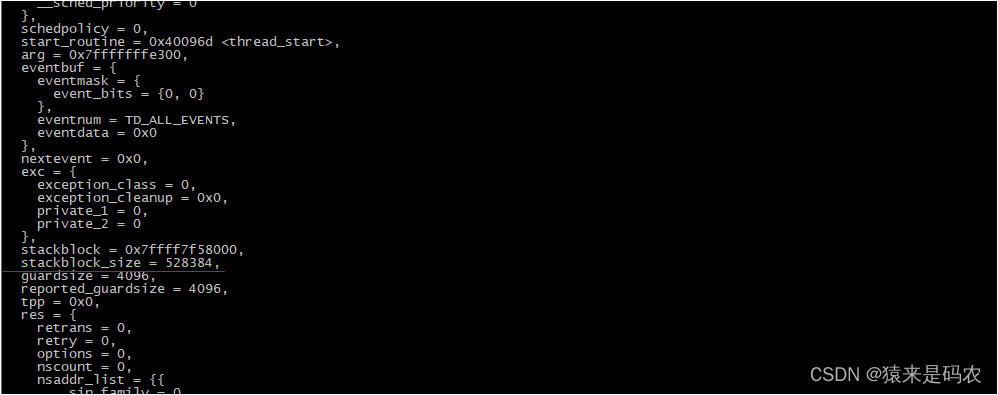 这个函数就是获取指定线程的信息,其中当然包括用户设置的栈大小