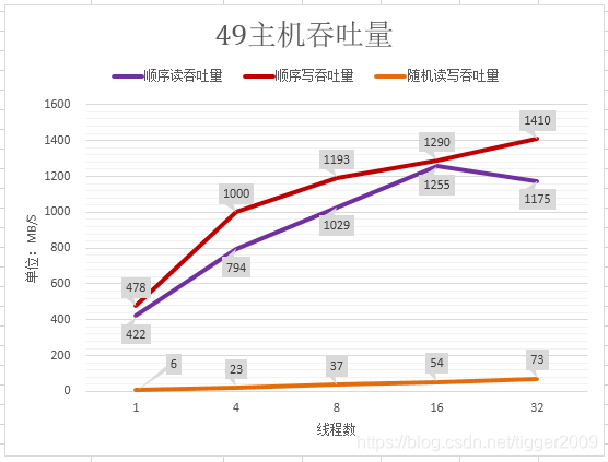 使用sysbench工具进行测试,编写循环脚本分为2G,8G,两类大小文件进行,分别从顺序读、顺序写、随机读,随机写、随机读写,设置4K,16K文件块大小,使用1、4、8、16、32线程进行测试。