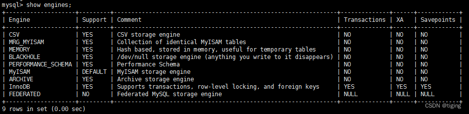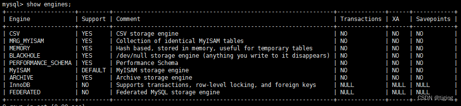 mysql> show engines;