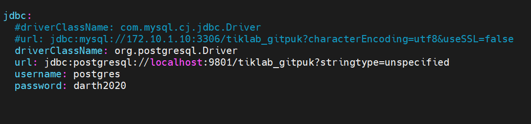注意:使用外部数据库的时候,需要将内嵌数据库postgresql.embbed.enable后面的数据修改为false