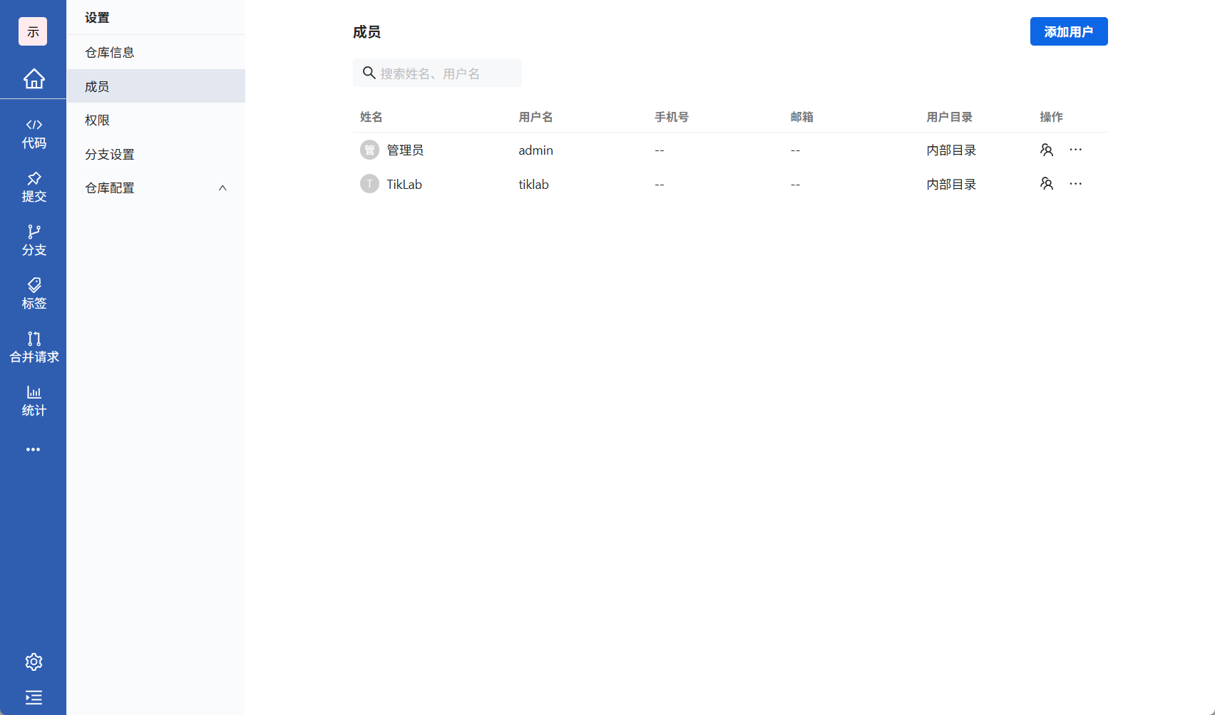 私有仓库,只有将用户添加到仓库成员中才可以访问权限
