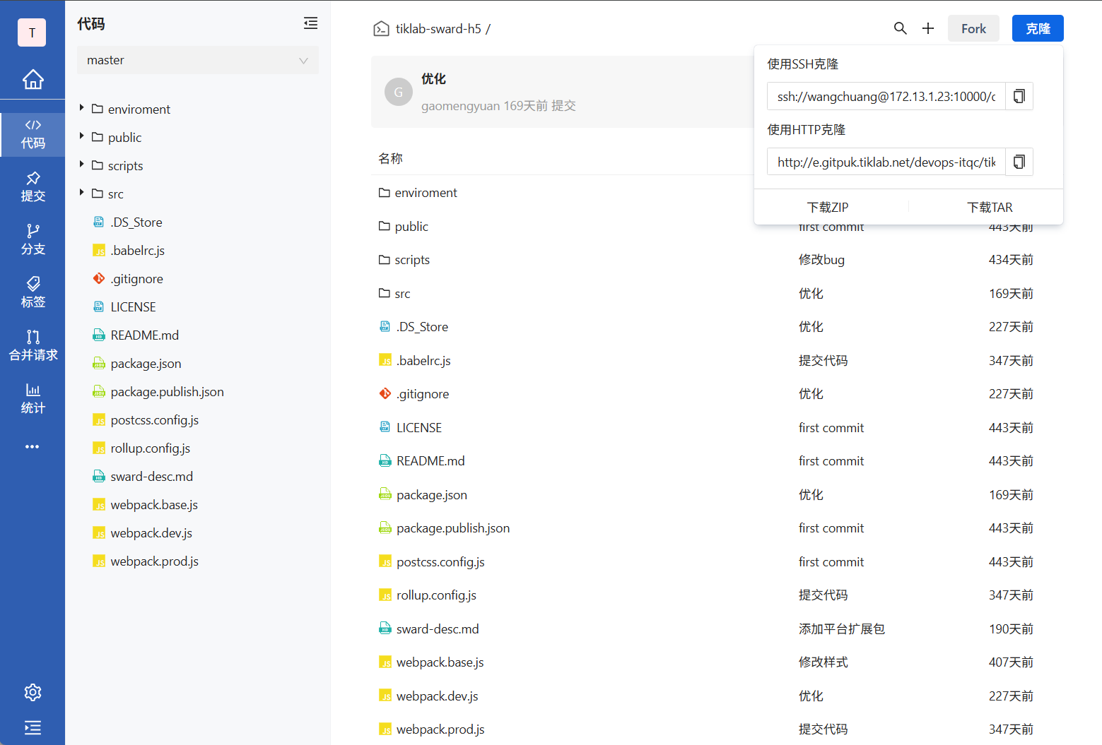 进入Gitpuk仓库界面获取仓库地址,执行下面命令拉取