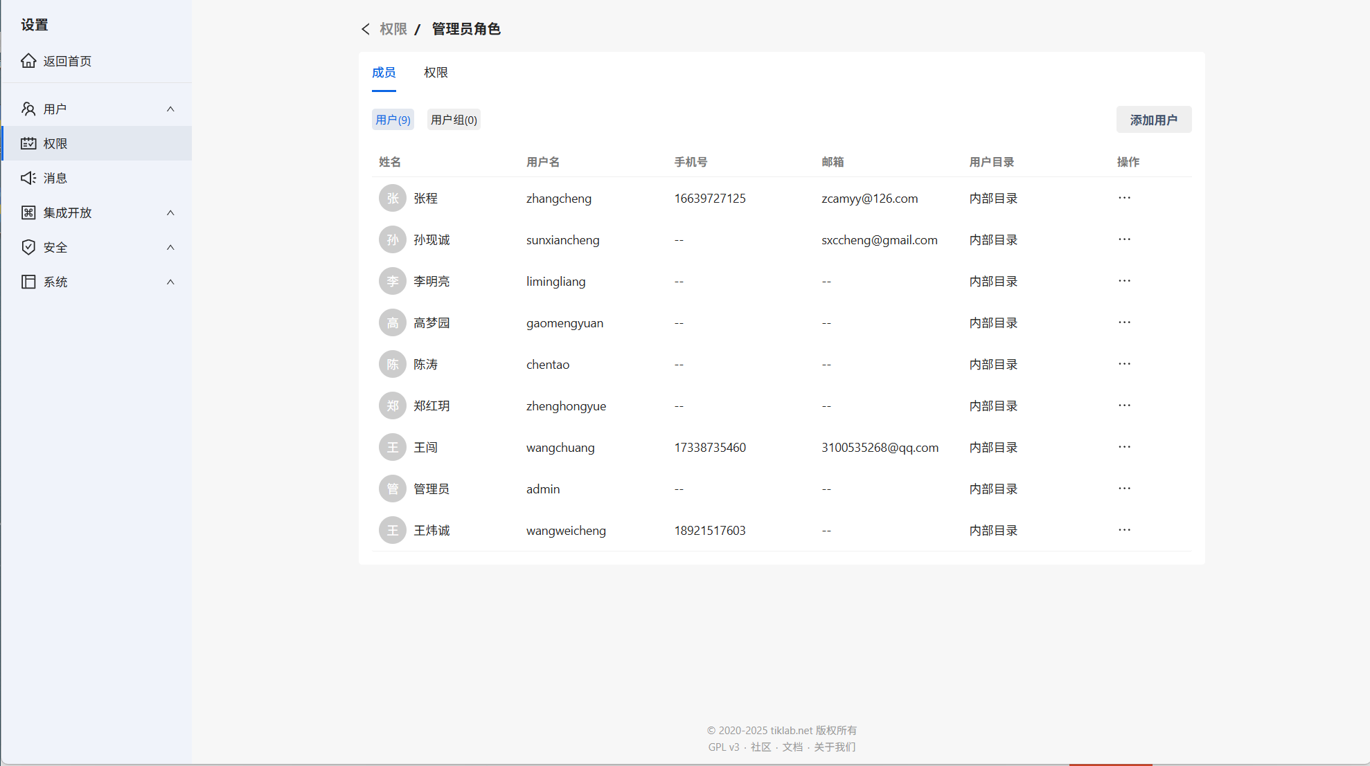 管理员直接创建的用户,可以直接管理用户基本信息,密码,角色等信息。