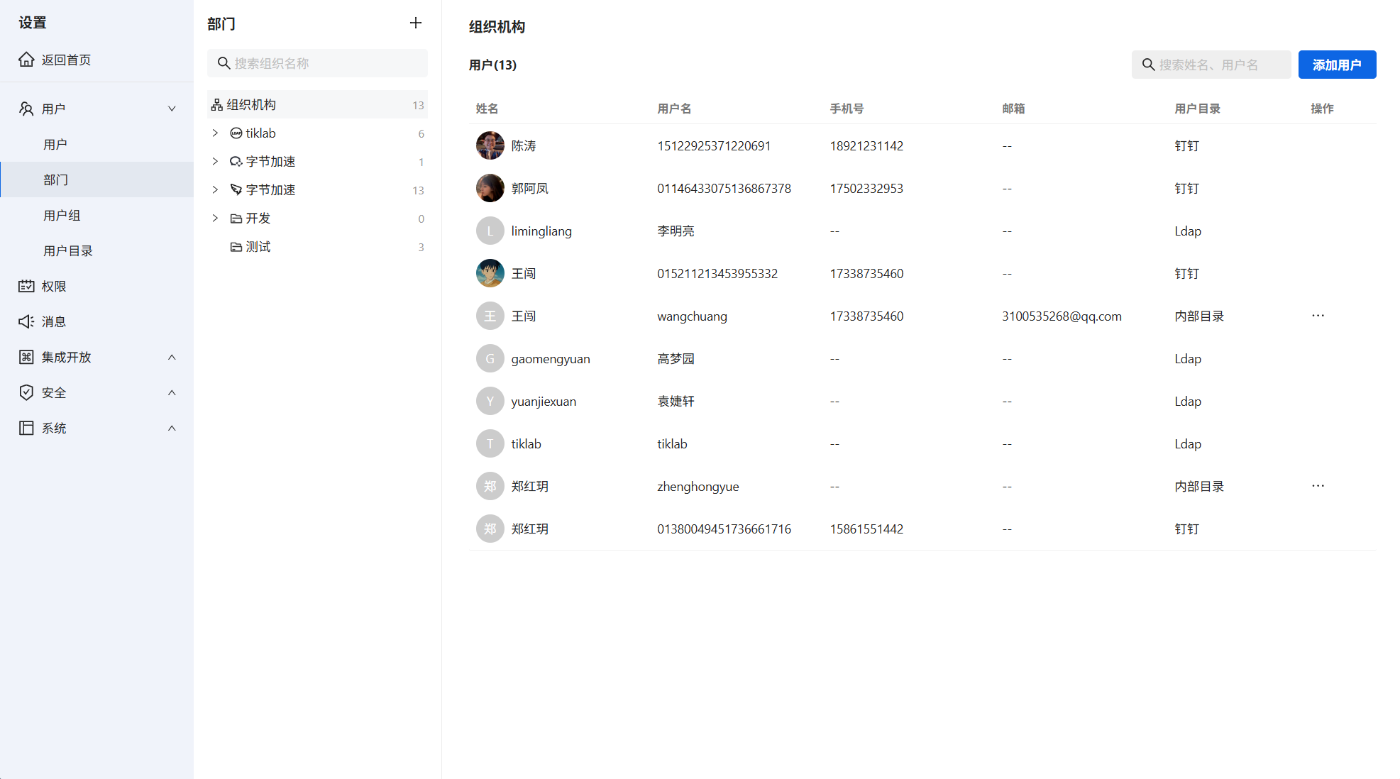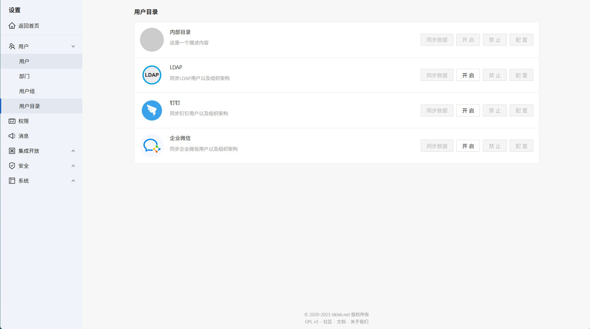 soular 具备强大的集成能力,支持与钉钉,企业微信、LDAP等主流身份认证协议对接,通过简单的配置即可同步用户,部门等信息。