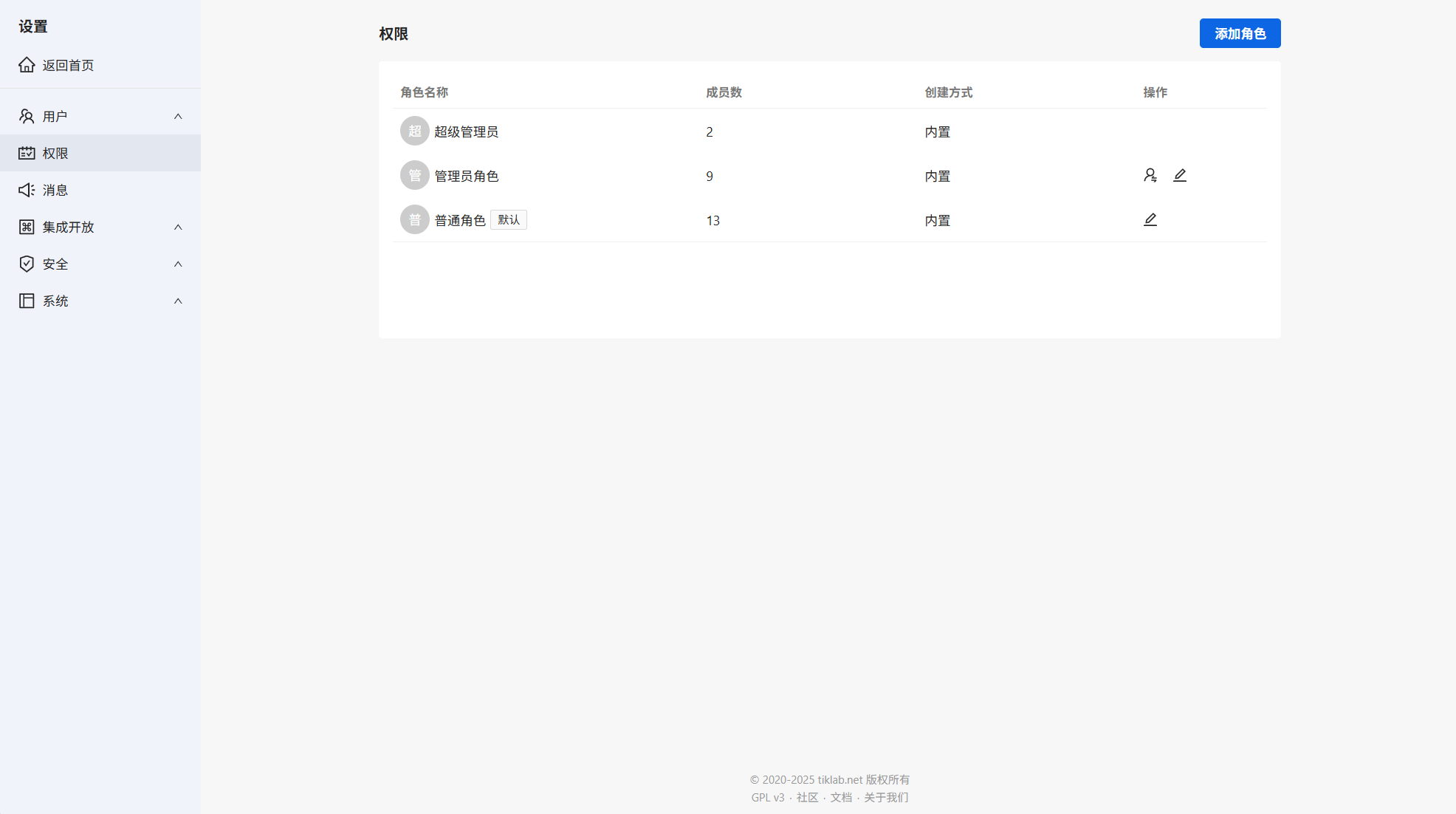 soular支持用户创建多个自定义角色,为不同用户分配不同的角色。