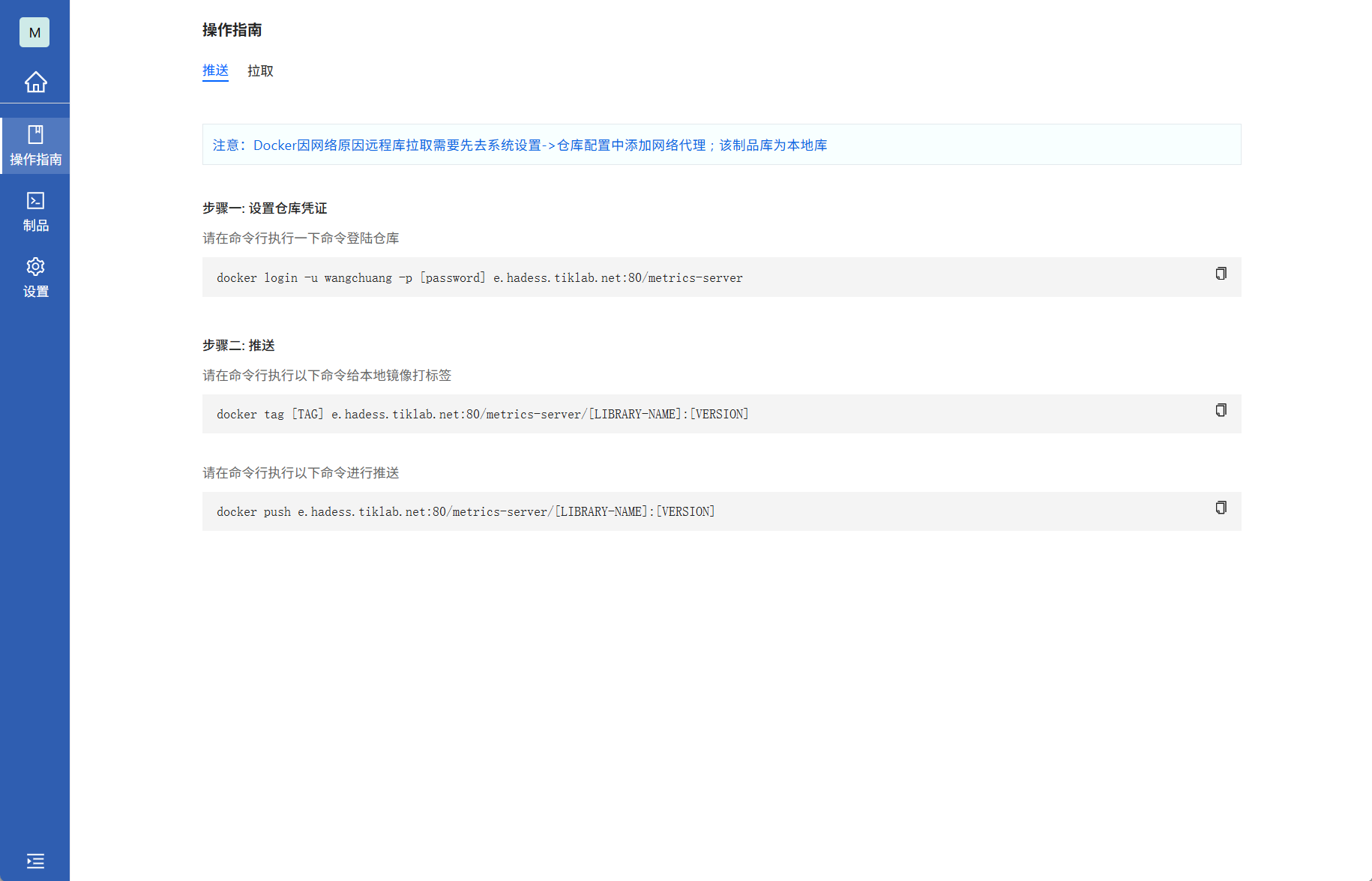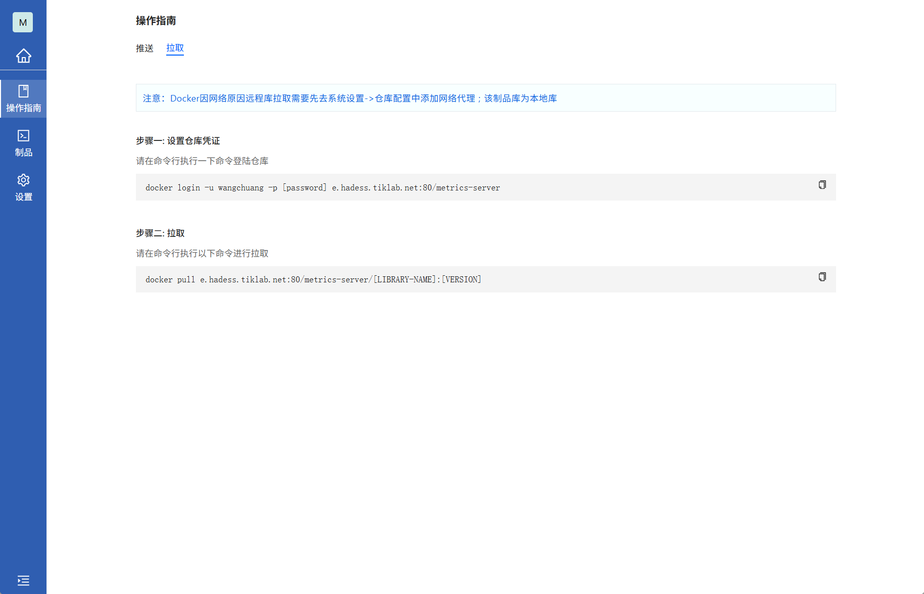 进入Docker类型本地库,查看操作指南的拉取