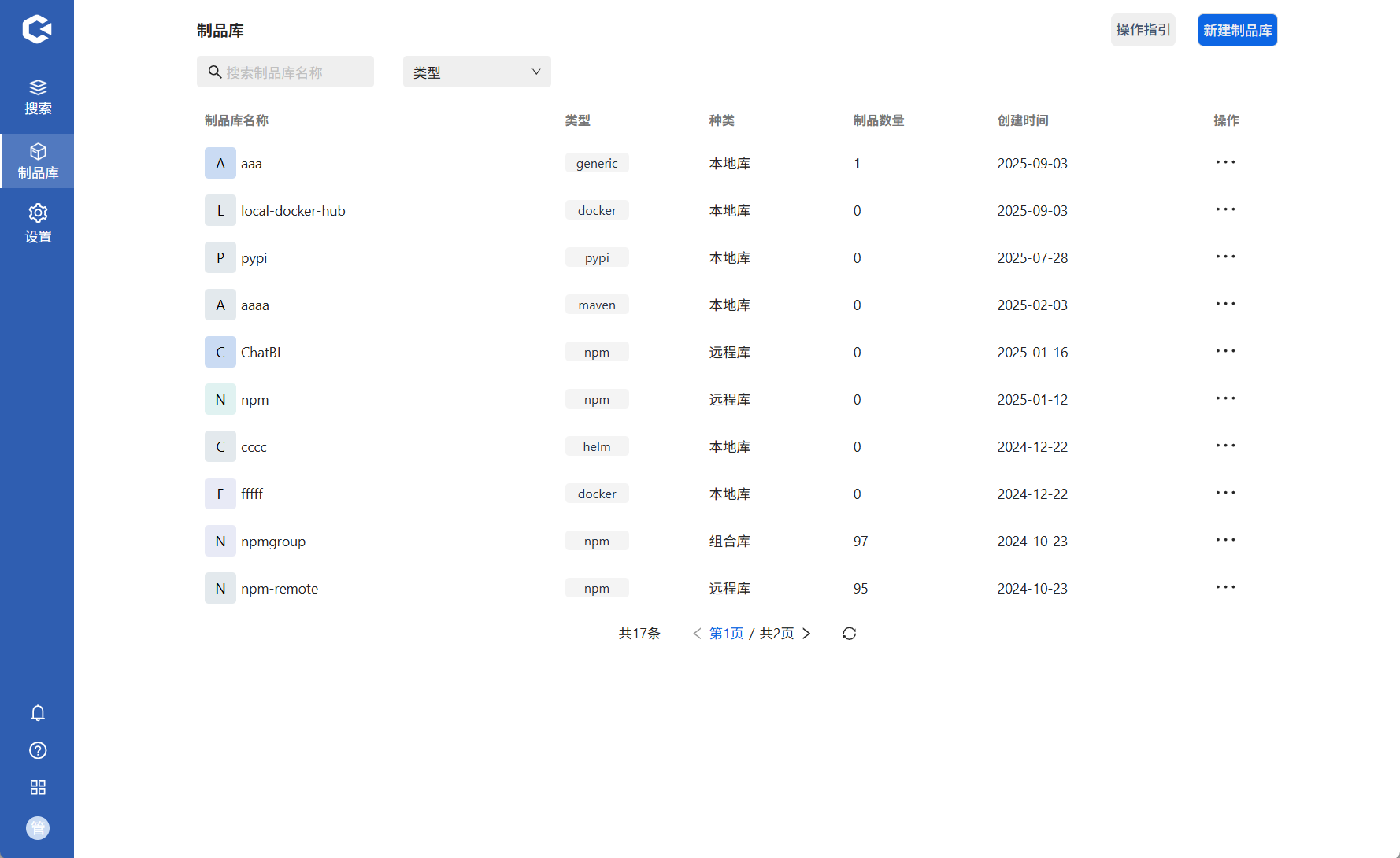 制品库管理,帮助团队轻松管理和存储开发过程中生成的各种制品。通过简洁直观的界面,用户可以方便地对制品进行分类、版本管理和追踪,确保团队在不同环境下的制品使用保持一致