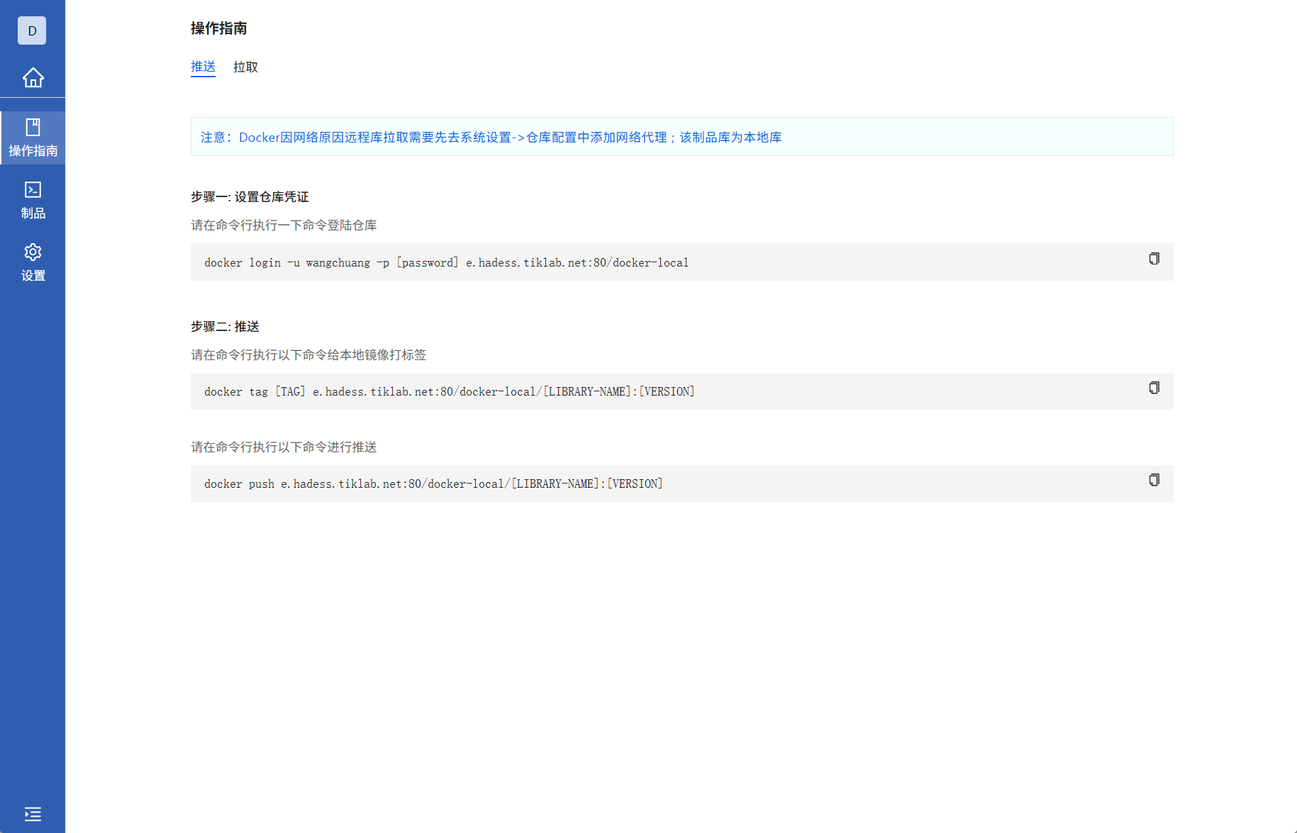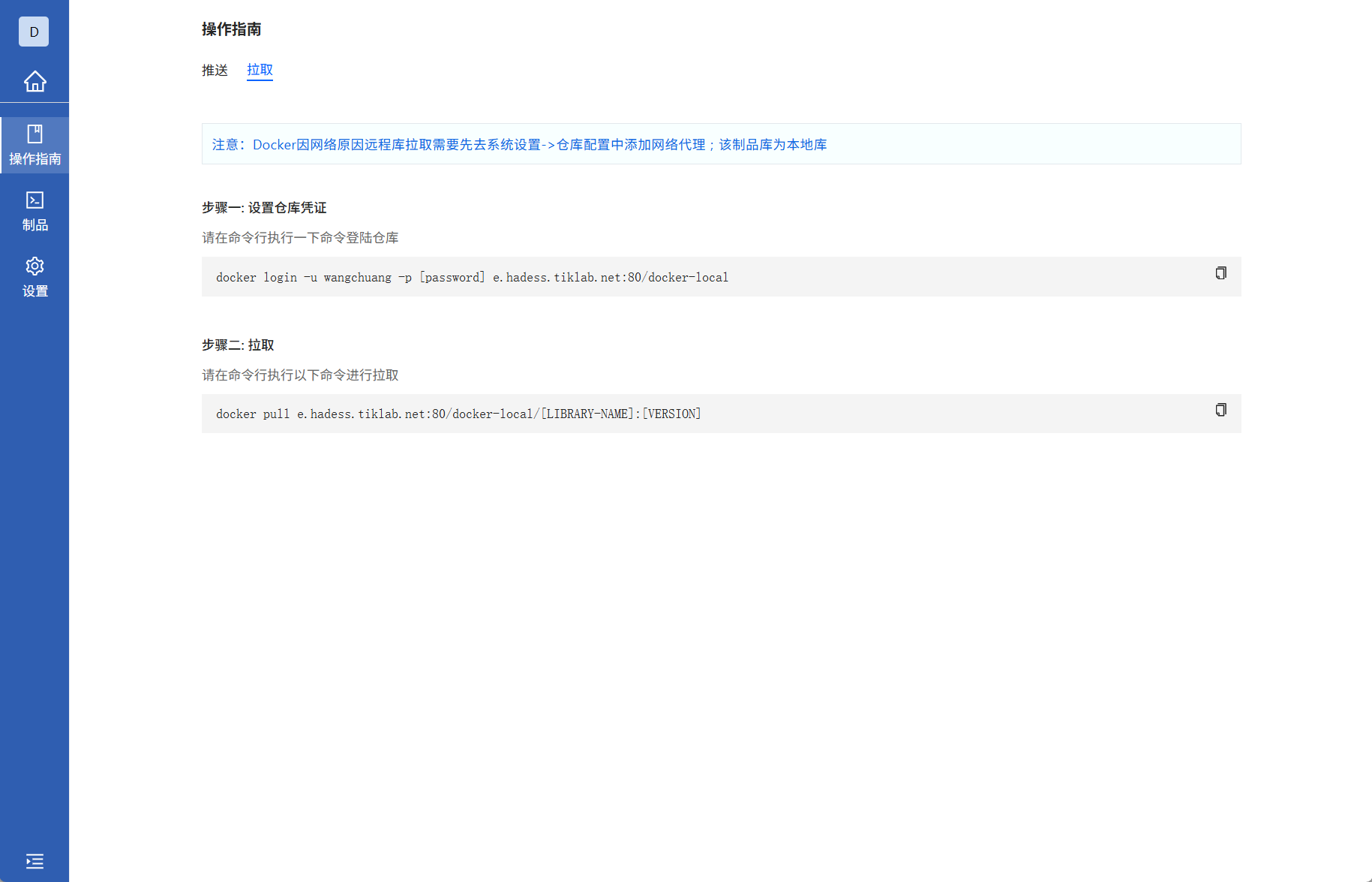 进入Docker类型本地库,查看操作指南的拉取
