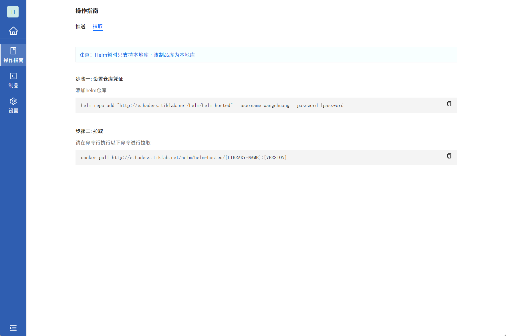 进入Helm类型本地库,查看操作指南的拉取