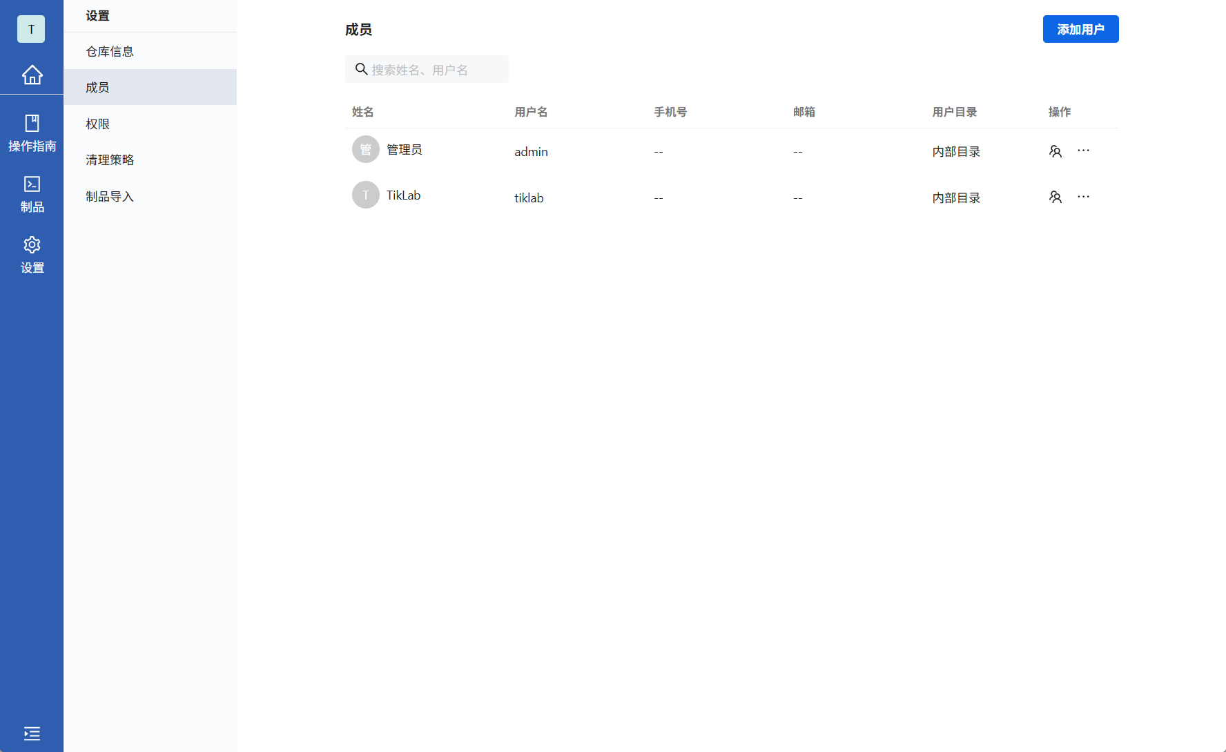 仓库设置分为仓库信息、成员、权限功能
